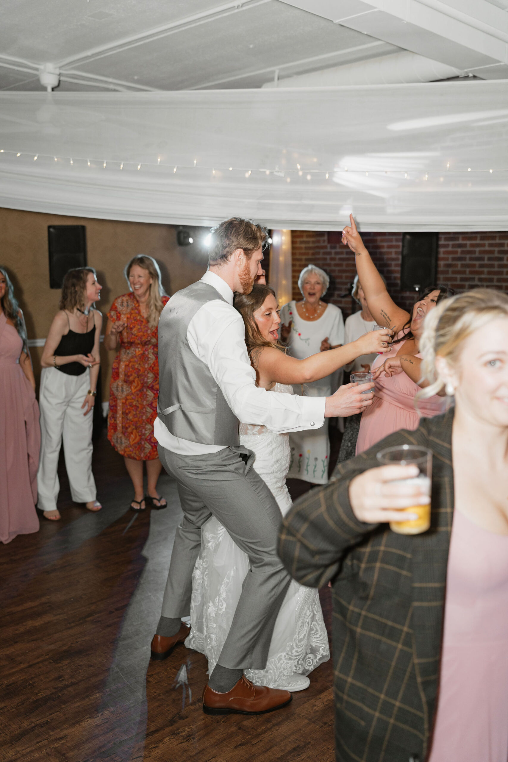Inside, the Charleston Event Center gave off the warmest glow — candles, soft lighting, and tables full of people who clearly adore these two. Dinner turned into toasts, toasts turned into laughter, and before long the dance floor was full.