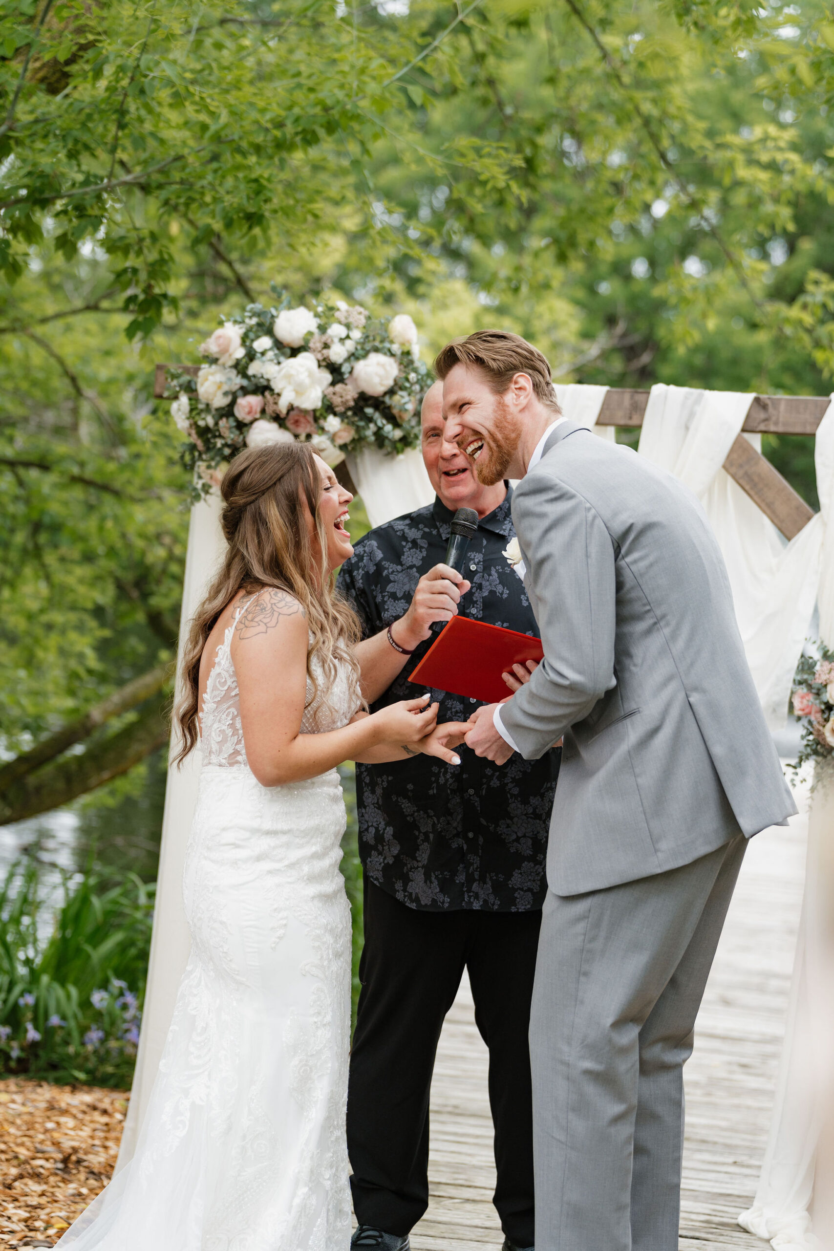 The breeze off the pond, the soft movement of the trees, and the way Jay looked at Kayla as she walked down the aisle created the kind of moment photographers dream of capturing. Their ceremony was personal, heartfelt, and full of emotion — the kind that fills an entire gallery with meaning.